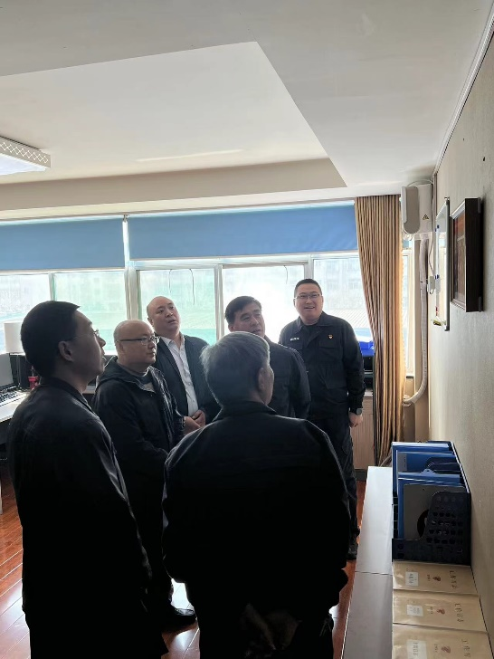 近日,淄博市公安局治安支隊五大隊大隊長鄧占武一行到金融護衛中心郵政銀行大隊實地檢查、指導工作,公司黨委成員、副總經理丁德鵬陪同檢查。
